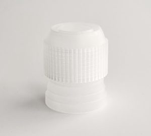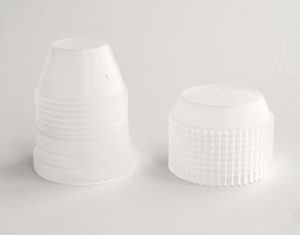 Praktischer Adapter aus Kunststoff in 2 Teilen. Perfekt für die großen Tüllen aus Edelstahl von Silikomart (z.B. Blumen-Tülle).