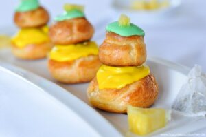 Entremets ananas et meringues (Ananas-Baiser-Nachspeise)Religieuses ananas verveine (Religieuses Ananas Zitronenverbene)Entremets Ananas-Kokos