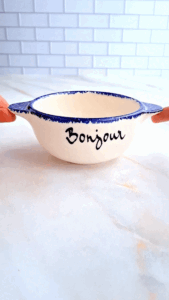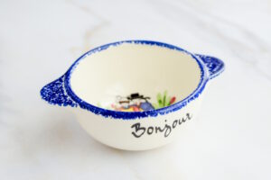 Nach Ihre Wünsche, gibt es hier den berühmte Bretonische Schale mit den Beschriftung “Bonjour” um jeden Tag mit einem Lächeln anzufangen.