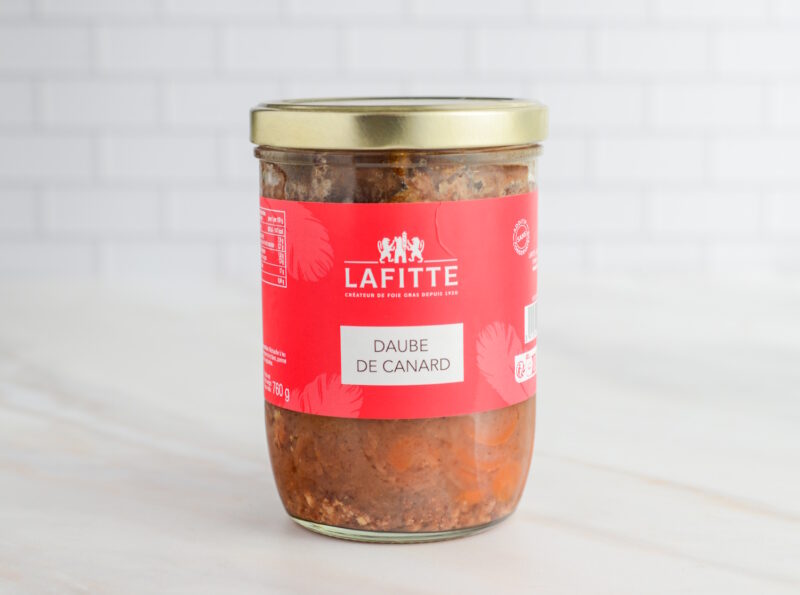 Die Daube de Canard von Maison Lafitte vereint zarte, großzügige Stücke von Entenkeulen aus den Landes mit einer kraftvollen, aromatischen Sauce aus Madiran-Wein und einem Hauch Armagnac.