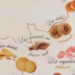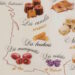 Geschirrtuch mit einer Süßigkeiten-Karte Frankreichs, auf der alle Süßigkeiten nach Regionen abgebildet sind.