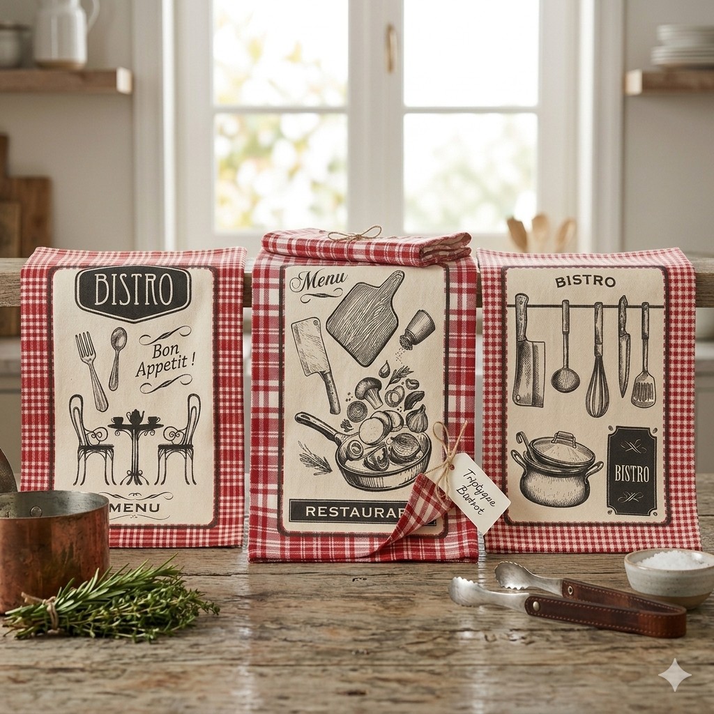 Ob ein kleines Café in Paris oder ein authentisches Restaurant in Lyon. Diese Geschirrtücher holen die Atmosphäre französischer Genusskultur direkt zu Ihnen nach Hause.