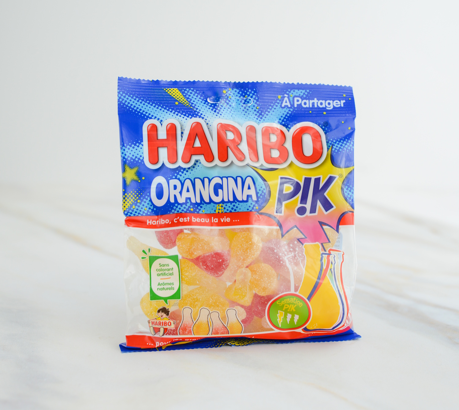 Diese Haribo Orangina Pik sind eine echte klassiker aus Frankreich! Inspiriert von der berühmten französischen Limonade Orangina, überraschen diese kleinen, bunten Bonbons mit ihrem spritzig-sauren Geschmack und ihrem prickelnden Zuckermantel.