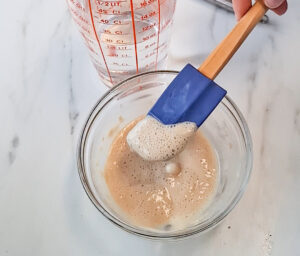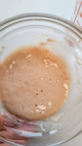 Diese Hefemischung wird cremig und schaumig. Sie ist jetzt bereit zum Backen.