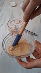 In eine kleine Schüssel das Mehl mit dem Zucker und die Trockenhefe mischen. Dazu die Flüssigkeit geben, umrühren und 7-8 Minuten gehen lassen.