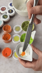 Empfohlene Dosierung: 200 mg pro 1 kg. Speziell für Macarons brauchen Sie NUR eine Messerspitze für eine Portion. Wasserlösliche Lebensmittelfarbe
