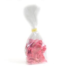 Zutaten: Zucker, natürliche Rosenblütenblätter, Gummi Arabicum, Farbstoff Karmin, Aroma.