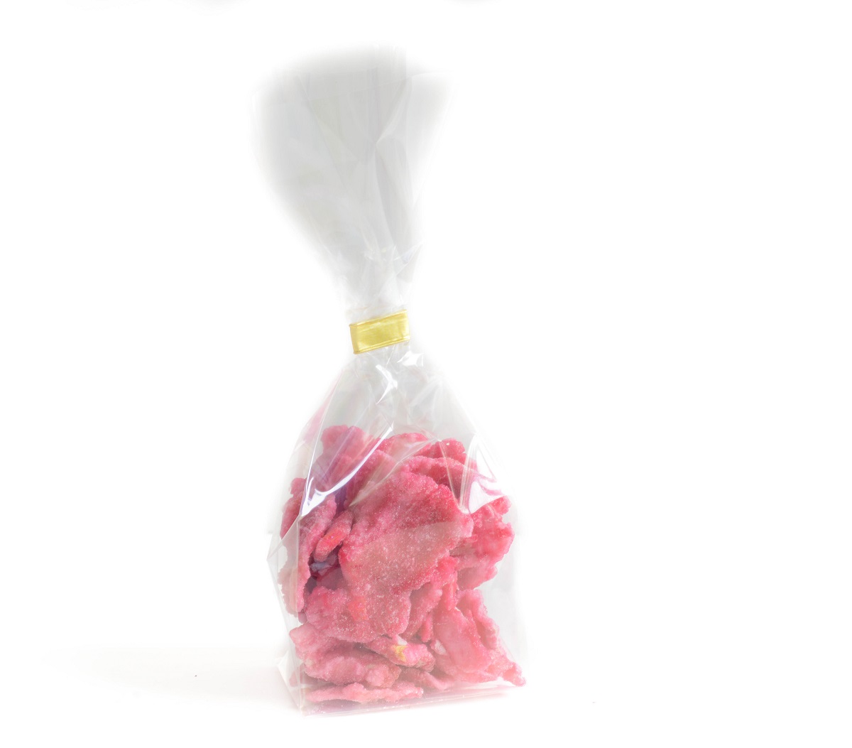 Zum Schluss werden die kandierten Rosenblütenblätter sorgfältig verpackt – bereit zum Genießen oder Verschenken.
