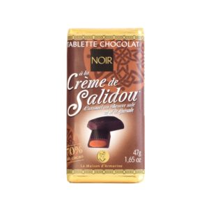 Achtung Suchtgefahr! 70% dunkle Schokolade gefüllt mit Crème de Salidou (Salzbutterkaramellcreme). Mit Fleur de Sel de Guérande verfeinert.