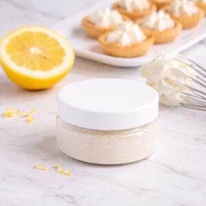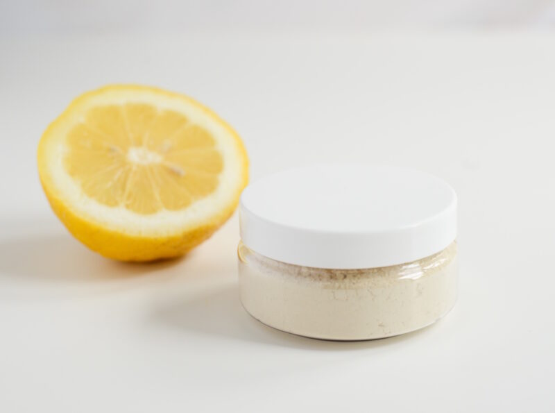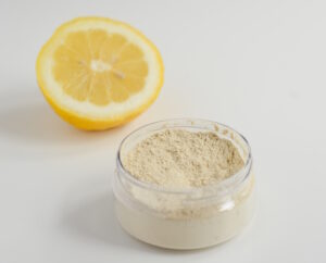 Das Pulver hat eine helle gelbe Farbe, mit einem sehr leichten Zitrusschale-Geruch, der bei der Weiterverarbeitung der Hauptzutaten komplett abgedeckt sein wird.