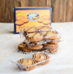 Für Naschkatzen, die gerne teilen. 20 Palets Bretons mit frischen Zutaten und echter Baratte Butter in der Bretagne hergestellt. Pro 2 Stück frisch abgepackt.