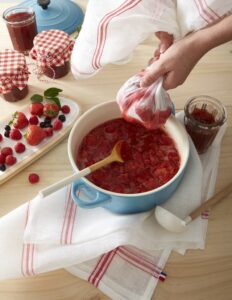 Perfekt für Konfitüren, Gelees, Marmeladen, Sirup, Saucen, Coulis und sogar selbstgemachten Frischkäse.