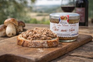 Gönnen Sie sich als Vorspeise oder bei Ihrem Abendbrot ein traditionelles Rezept mit Steinpilzen, edlen Schweinefleischstücken und Entenfleisch. Im Herzen des Südwestens mit ausgewählten Zutaten zubereitet. Diese Pastete wurde wie “zu Hause” ohne Konservierungs- und Zusatzstoffe hergestellt, was das sichtbare Fett an der Oberfläche erklärt.