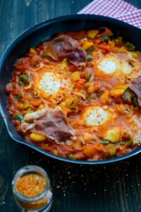 Ich würze mit unserem Piment d’Espelette mein Baskisches Hühnchen, die Piperade aber auch meine Ratatouille und Fischsuppe. Mit mediterranem Gemüse und Hühnchen passt es einfach perfekt zusammen.