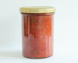 Eine klassische Beilage der baskischen Küche. Mit frischen Zwiebeln, Tomaten, Paprika, Piment d’Espelette und viel Liebe gekocht. Einfach erwärmen und Schinken, Geflügel, Reis oder Nudeln dazu servieren. Kann auch als Basis für eine Gemüse-Pizza benutzt werden.