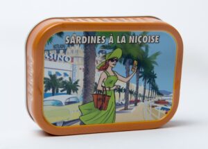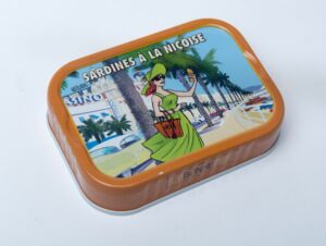 Auf dieser Sardinendose finden Sie eine Illustration der “Promenade des Anglais” in Nizza.