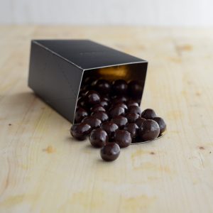 Knackige, geröstete Haselnüsse aus Italien umhüllt von Zartbitterschokolade 55% Kakao von Valrhona. Ideal zum Knabbern, aber auch zum Verfeinern von Desserts und Gebäck.