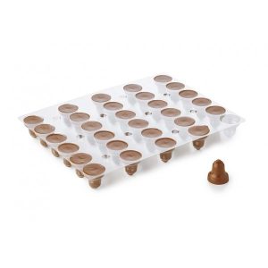 Professionelle Schokoladenform aus APET. Damit lassen sich ganz einfach 30 wunderschöne Schokoladen-Glocken oder Pralinen gießen. Die Form kann mehrmals verwendet werden. Größe jeder Mulde: 3,6 cm.