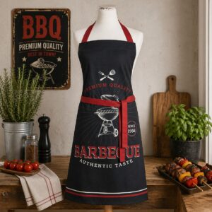 Anthrazite Schürzen mit Barbecue” Motiv. Ideales Geschenk für Papa oder Opa.