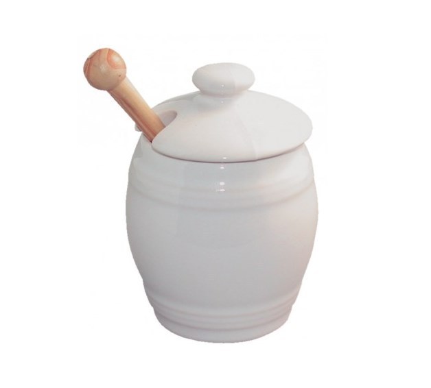 Jetzt kaufen: Senftopf aus Porzellan mit Deckel und Holzlöffel