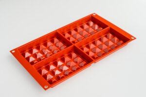 Die Silikonformen von Silikomart können direkt aus dem Ofen/der Mikrowelle in den Kühl-, Gefrierschrank gestellt werden und umgekehrt. Das verwendete LSR-Flüssigsilikon ist sehr flexibel, antihaftend, geschmacksneutral und sondert keinerlei Rauch während des Kochens/Backens ab.
