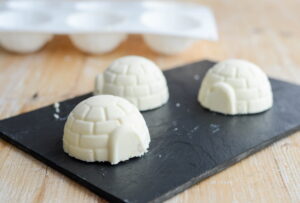 Schöne winterliche Kuchenform aus Silikon für 6 kleine Iglu.