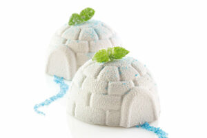 Schöne winterliche Kuchenform aus Silikon für 6 kleine Iglu. Perfekt für Eis, Parfait, Kuchen oder individuelle Desserts.