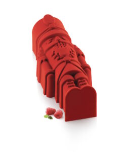 Eine weihnachtliche Nussknacker-Backform aus Silikon für Bûche de Noel, Kuchen oder geeiste Torte. Damit zaubern Sie einen Nussknacker Kuchen oder geeiste Torte. Um eine besondere Füllung für diese Form zu zaubern, können Sie die Insert Form benutzen.