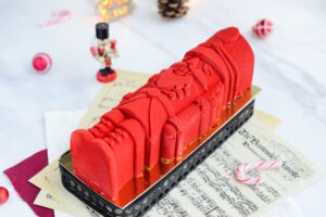 Passt perfekt zusammen mit den Pralinenformen Nussknacker von Silikomart. Ich habe auch mein fertig geeiste Nussknacker Torte mit Rote Velvet Spray beschmückt, und es war perfekt!