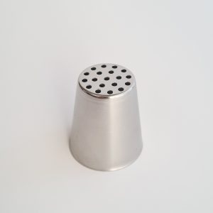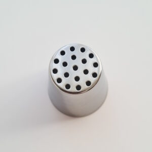 Abmessungen:  Ø 3,7 , h 4,2 cm, Öffnung: 2,1 cm mit 19 Löchern.