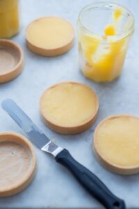 Ganz wunderbare Tartelettes au citron gebacken. Funktioniert mit einem planen Kuchenblech ganz wunderbar.