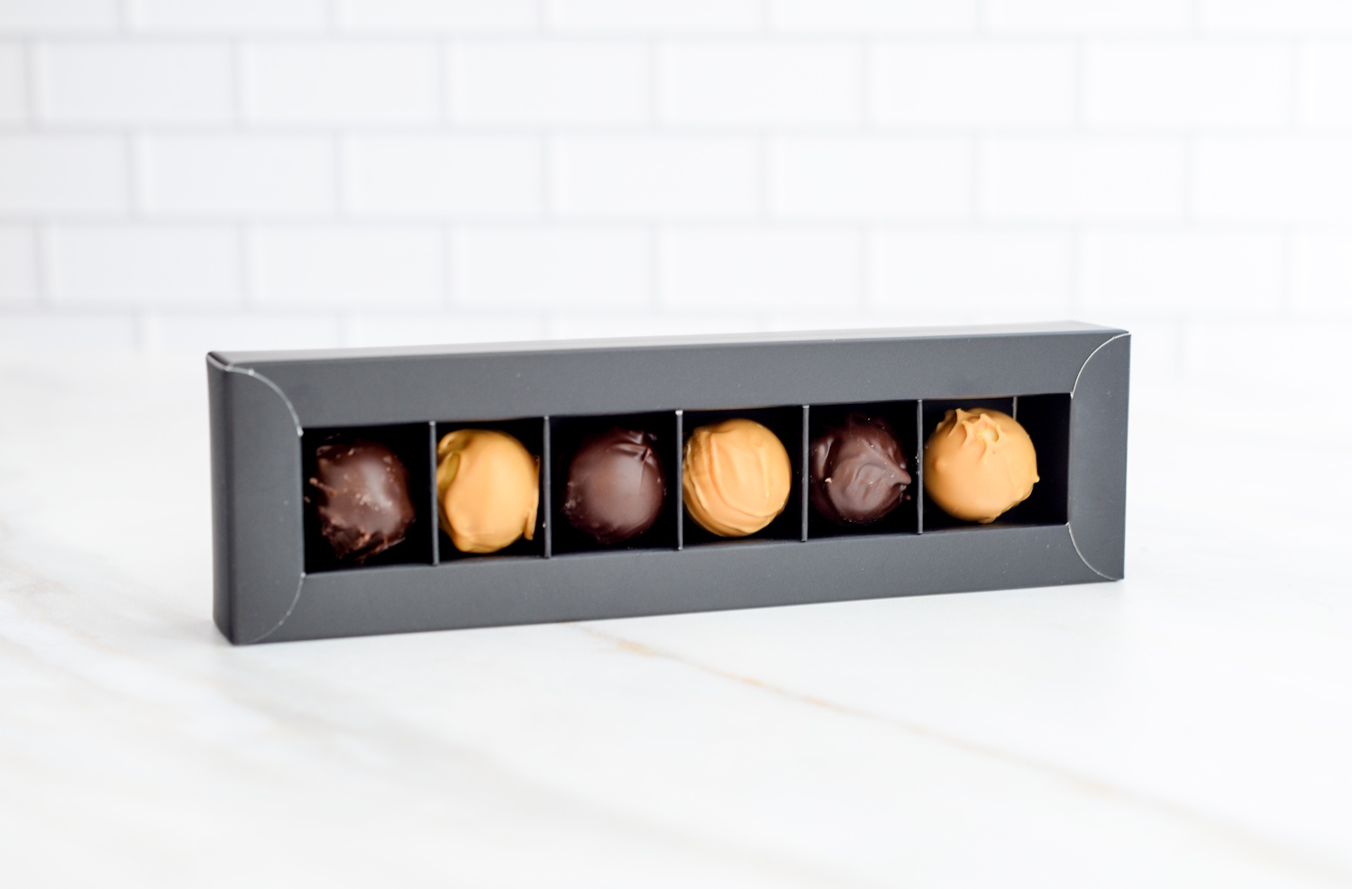 Diese luxuriöse Trüffel-Auswahl vereint zwei ikonische Schokoladenkreationen von Valrhona, einer der renommiertesten Chocolatiers der Welt. In einer stilvollen schwarzen Geschenkbox erwarten Sie 6 handveredelte Trüffel, die puren Genuss und französische Chocolatierkunst widerspiegeln.