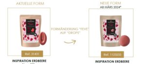 Hinweis: Seit dem 1. Januar wird die Inspiration Erdbeere nicht mehr als Taler, sondern als Drops von Valrhona hergestellt.