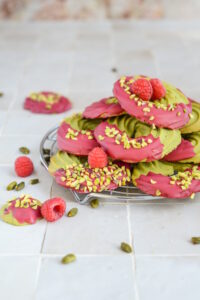 Liebe Aurélie, nun habe ich das tolle Rezept ein zweites Mal probiert. (Beim ersten Mal hatte ich nur Pistaziencreme und weiße Schokolade, da sind mir die Kekse trotz Kühlung total verlaufen) Mit der Pistazienpaste und der Himbeerschokolade von dir ist das Ergebnis toll geworden. Alle sind begeistert. Ein echtes Highlight auf dem Weihnachtsplätzchenteller. Danke